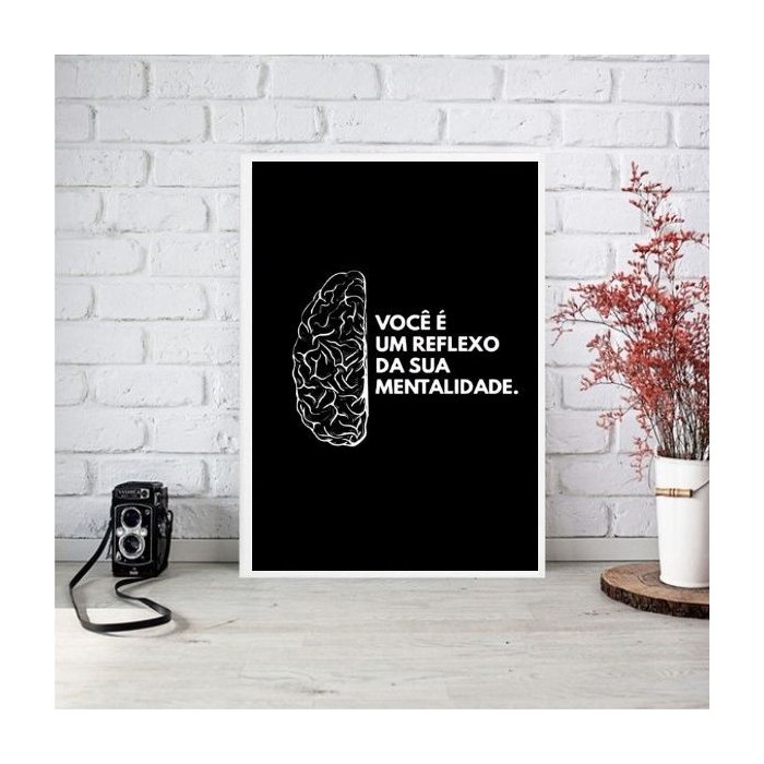Quadro Você É Um Reflexo da Sua Mentalidade 24x18cm - com Vidro:moldura Branca