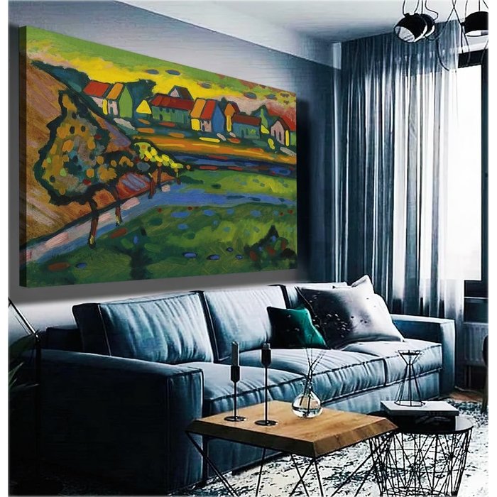 Quadro Wassily Kandinsky Vila Bavaria Com Campo:90x60 cm/DOURADA
