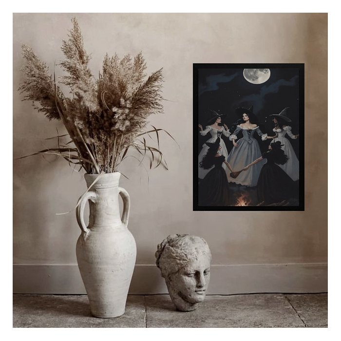 Quadro Wicca Ritual Das Bruxas 24x18cm:madeira Branca