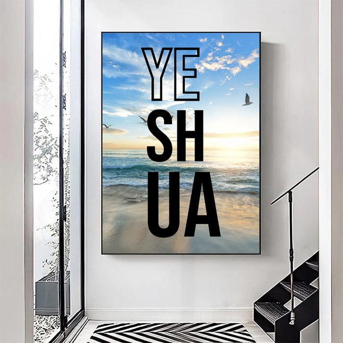 Quadro Yeshua Praia - Tela Única - 90 x 60 cm - Preta