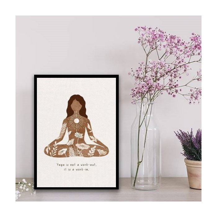 Quadro Yoga Is Not A Work Out 33x24cm - com vidro:Madeira branca