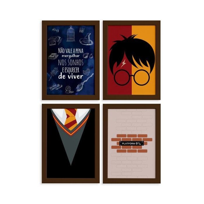 Quadros Bruxinho Mágico Harry Moldura Marrom 33x43cm 4un Multicolorido