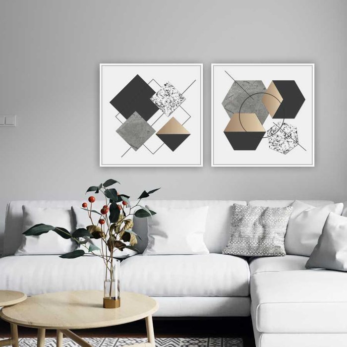 Quadros Composição Forma Moldura Branca 2X 30X30Cm