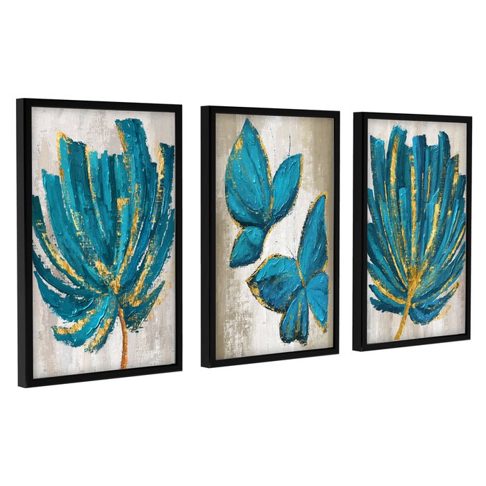Quadros decoração De Parede Sala Quarto Trio Flores E Borboletas Azuis - Preto Azuis - Preto