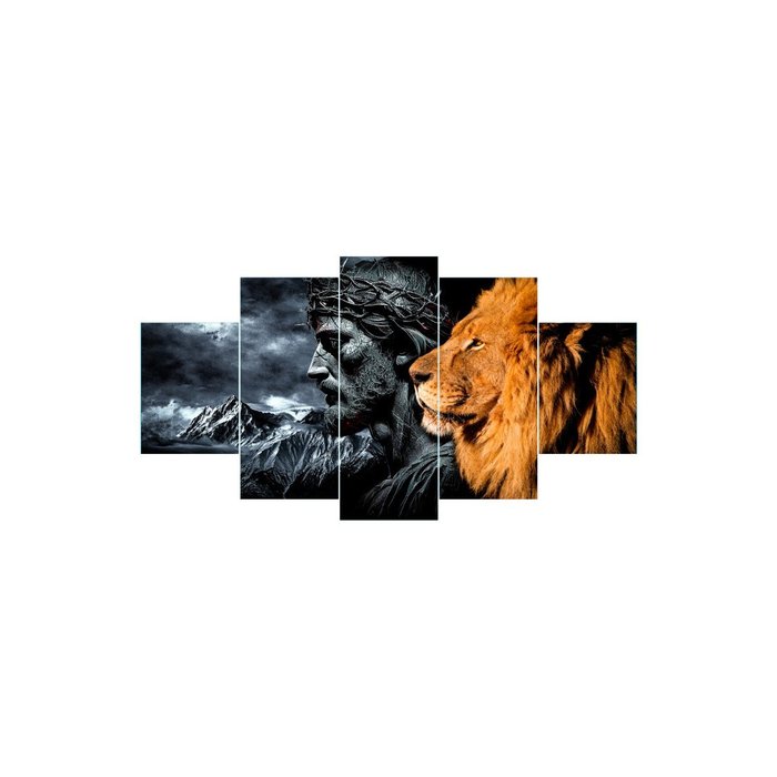 Quadros Decorativo Leão Judá Dourado e Cristo Preto e Branco Dourado e Preto e Branco