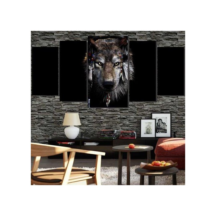 Quadros Decorativos 5 Peças Olhar Lobo Selvagem Lindo