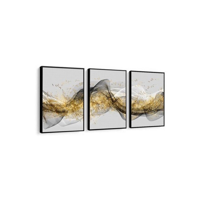 Quadros Decorativos Abstrato Dourado Efeito Ondas Luxo Sala Moldura Cinza Gold