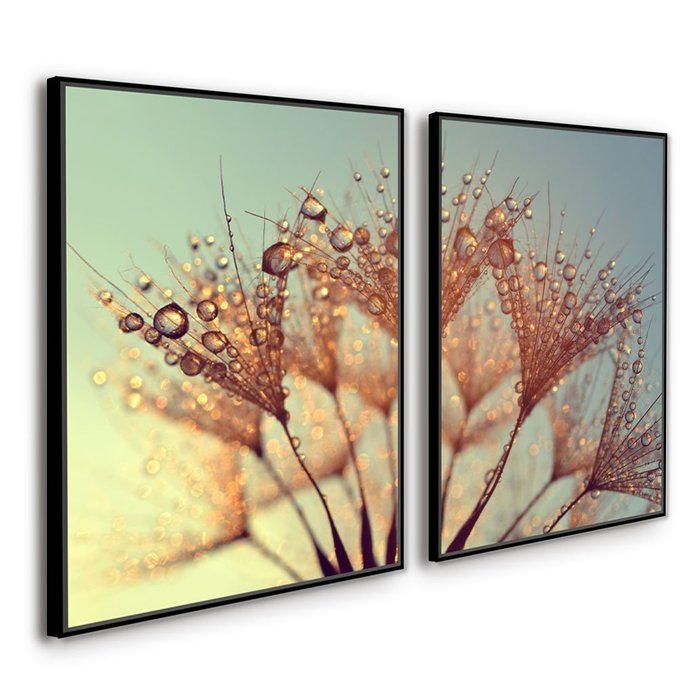 QUADROS DECORATIVOS FLORAL DENTE DE LEAO ORVALHO TONS VERDE:Preta