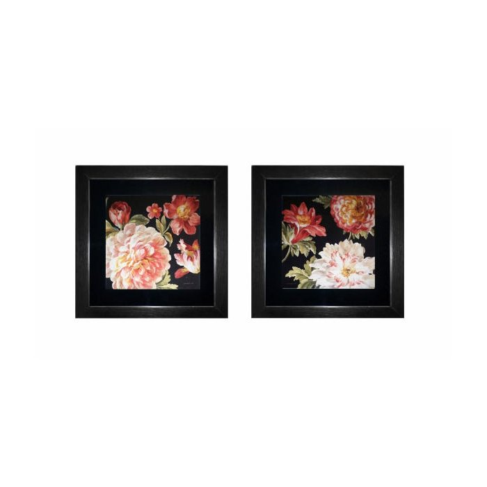 Quadro decorativo com gravura floral colada em Eucatex ( MDF ), com fundo preto, moldura de madeira revestida com gesso na cor preta e vidro.
