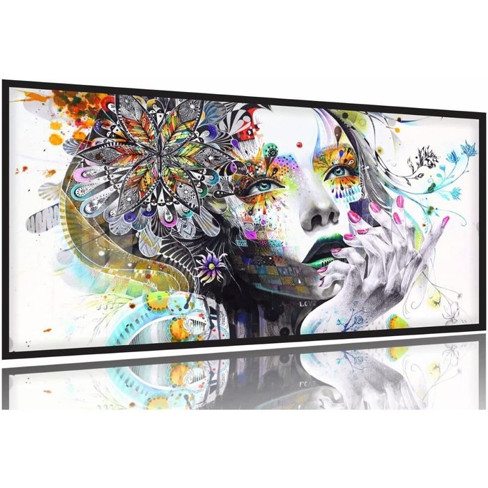 Quadros Decorativos Menina Abstrato Colorido 130x60 Moldura Preta 2x2 Ilustrado
