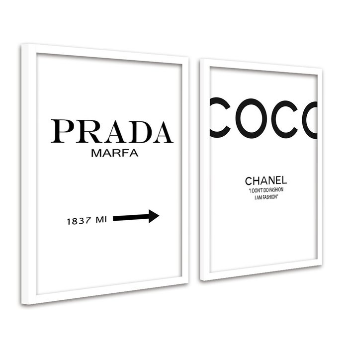 Quadros decorativos Moldura Palavras Prada e Coco Chanel:Branca