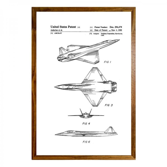 Transforme seu ambiente com Quadros decorativos Patente avião furtivo.