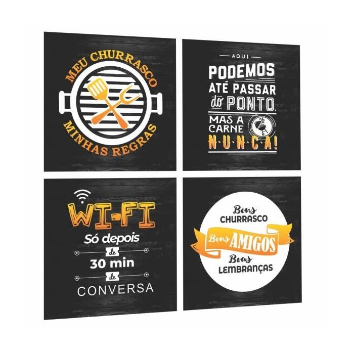 Quadros Espaço Area Gourmet Cantinho Churrasco Preto/amarelo