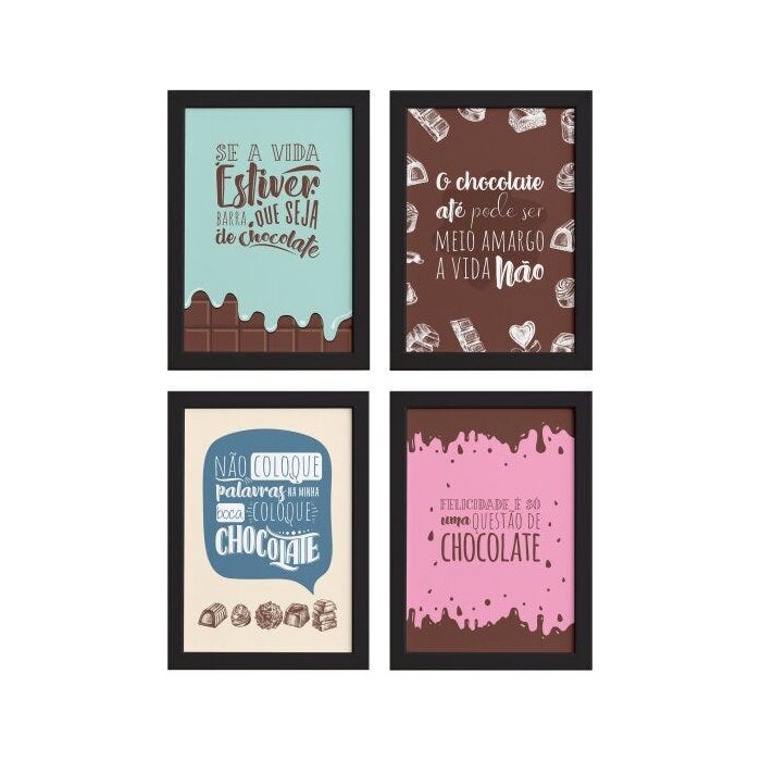 Quadros Frases Chocolate Moldura Preta 22x32cm 4un Multicolorido