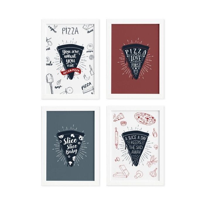 Quadros Frases Pizza Moldura Branca 22x32cm 4un Multicolorido