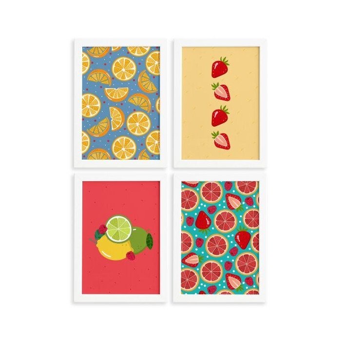 Quadros Frutas Cítricas Moldura Branca 22x32cm 4un Multicolorido