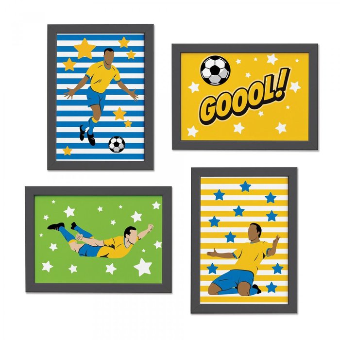 Quadros Futebol Gol 22x32cm Moldura Preta 4un