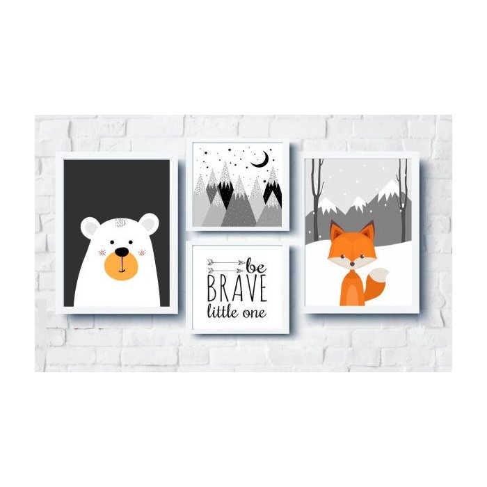 Quadros Infantil Raposa Urso e Montanhas Escandinavas