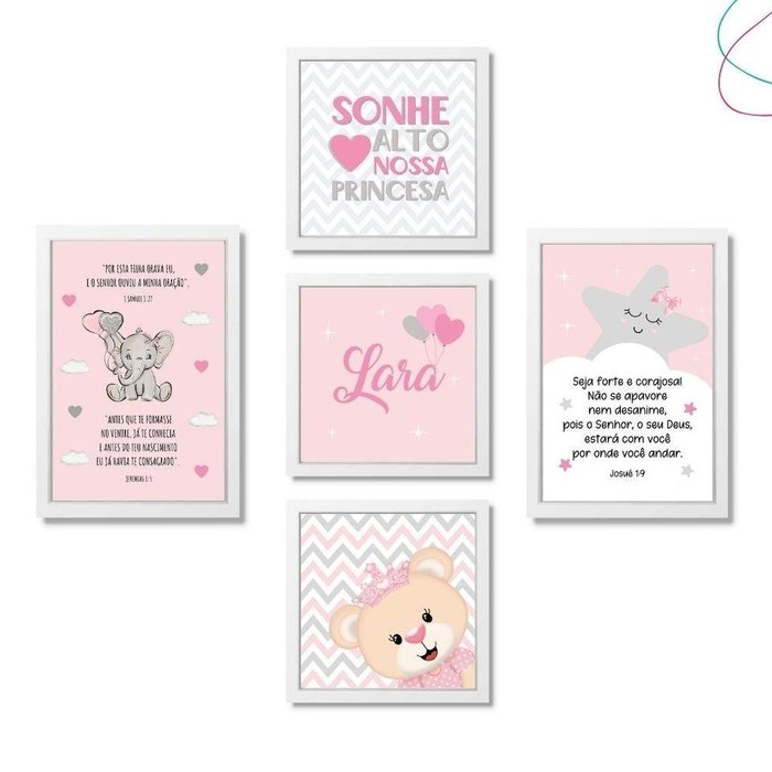 Quadros Decorativos Infantil Ursinha Princesa Elefantinho Cor Da Armação:branca