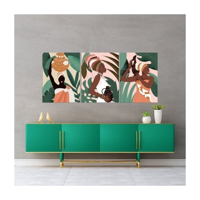 Quadros Para Sala Africanas Estilizadas 3 Telas 60x45cm
