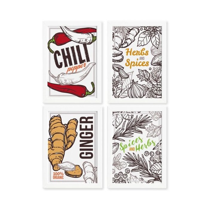 Quadros Temperos Naturais Moldura Branca 22x32cm 4un