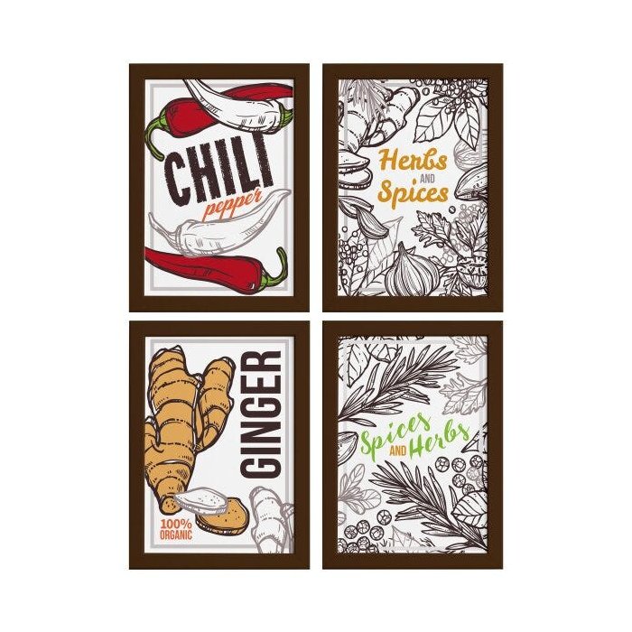 Quadros Temperos Naturais Moldura Marrom 22x32cm 4un Multicolorido