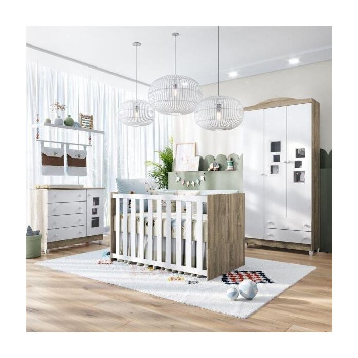 Quarto Bebê Madeira Meli Berço Cômoda Roupeiro Grão de Gente