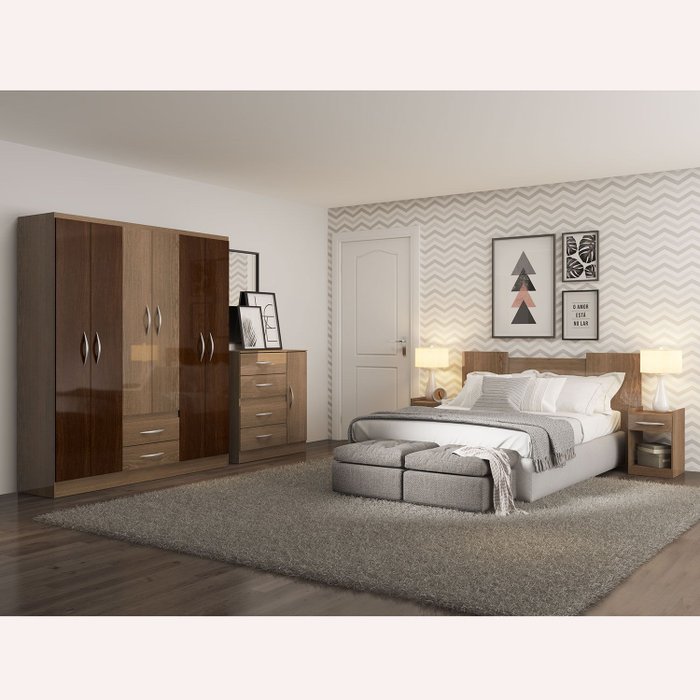 Quarto Casal Completo 03 Peças Carvalho/Imbuia - MENU - A02Q