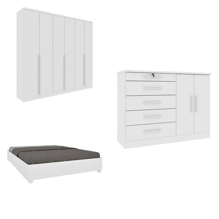 Quarto Casal Completo Guarda-roupa Londres Cama Mônaco e Cômoda Istambul Espresso Móveis Neve