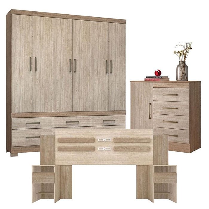Quarto Casal Vêneto com Cômoda Montevideu e Cabeceira Triunfo na cor nogal vanilla touch, é aqui pelo melhor preço. Desenvolvidos pela Demóbile com amplo espaço e ótimas repartições internas, tudo para facilitar na hora de organizar as roupas e acessórios com total praticidade e comodidade. Confira!