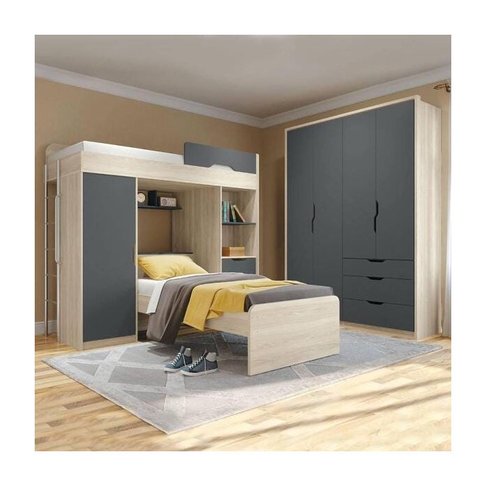 Quarto completo com cama multifuncional, auxiliar e Guarda-Roupa Conect Nevada Grafite nevada