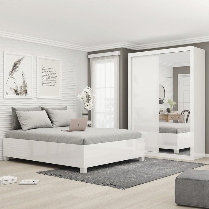 Quarto Completo de Casal Turim Plus e Cama Paula Carioca Móveis Branco
