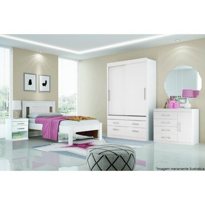 Quarto Completo Solteiro Click 2.4 4 Peças (1 Guarda Roupa + 1 Cama + 1 Cômoda + 1 Mesa Cabeceira) QS07 Branco - Santos Andirá Abaixo segue os produtos do KIT: Quarto Completo Solteiro Click 2.4 4 Peças (1 Guarda Roupa + 1 Cama + 1 Cômoda + 1 Mesa Cabeceira) QS07 Branco - Santos Andirá