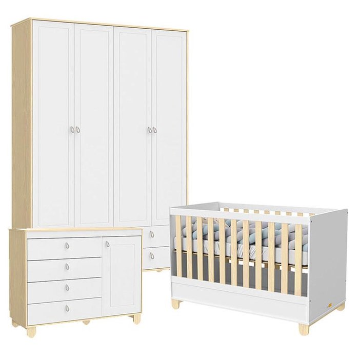 Quarto de Bebê 4 Portas Cômoda com Porta Rope Natural Branco Acetinado - Matic