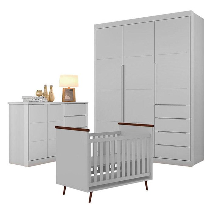 Quarto de Bebê Blenda com Berço Alice Cinza Acetinado - Phoenix Baby