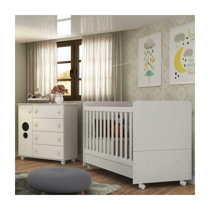 Quarto de Bebê com Berço e Cômoda Pimpolho Multimóveis Branco
