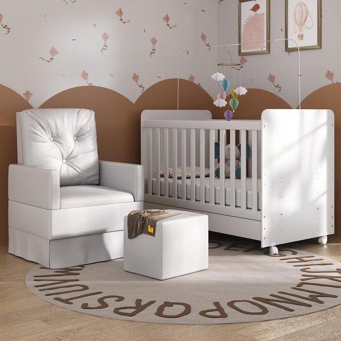 Quarto de Bebê com Poltrona Amamentação Puff e Berço Americano com Colchão Pimpolho Multimóveis Mp41