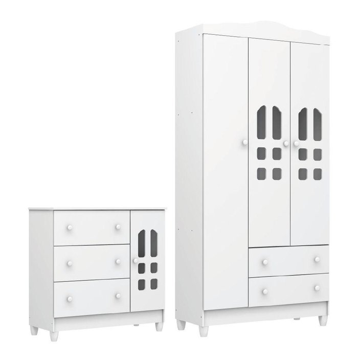 Quarto De Bebê Cômoda E Guarda Roupas Infantil 4 Portas 5 Gavetas Helena Branco Carolina Baby Branco