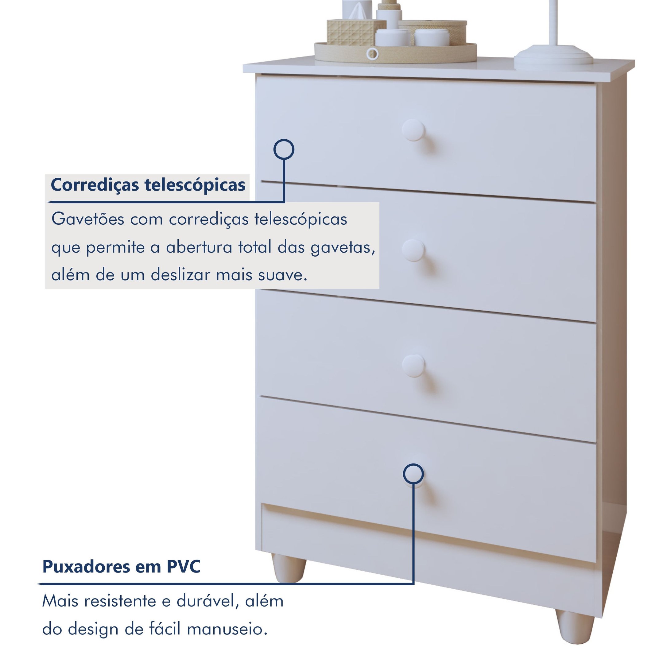 | Tipo de Corrediça da Gaveta | Telescópica |