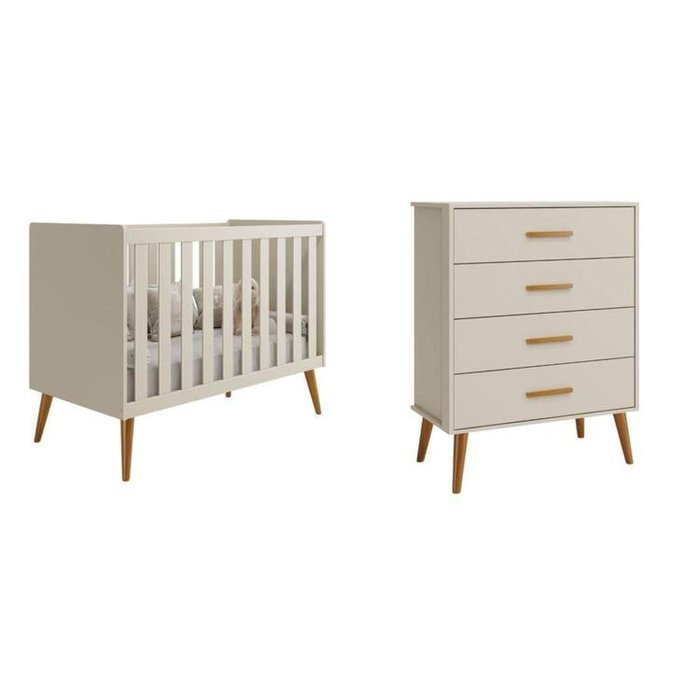 A cômoda Isis e o Berço são uma excelente opção pra quem procura por qualidade, beleza e praticidade. Seus pés retro em madeira dão charme e elegância ao produto. A cômoda Possui 4 gavetas espaçosas, corrediças telescópicas e puxadores em madeira e o berço possui 3 posições de estrado, acompanha suporte para mosquiteiro e ainda se transforma em uma linda mini cama.