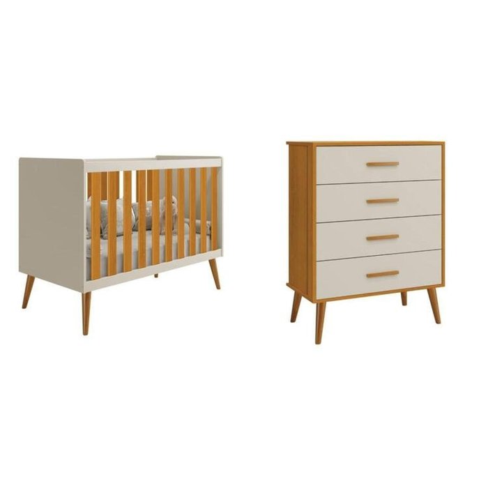 Quarto de Bebê Completo com Cômoda 4 Gavetas e Berço Isis Areia/Savana