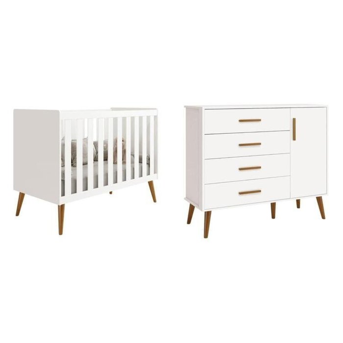 Quarto de Bebê Completo com Cômoda Sapateira 4 Gavetas 1 Porta e Berço Isis Branco