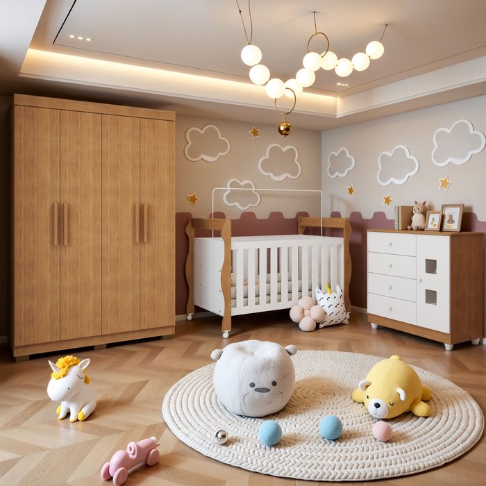 Quarto de Bebê Completo com Guarda-roupa, Berço e Cômoda Lipe