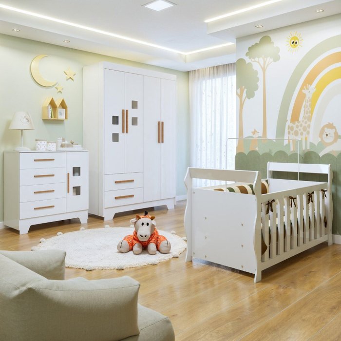 Quarto de Bebê Completo com Guarda-roupa, Berço e Cômoda Sonho Branco