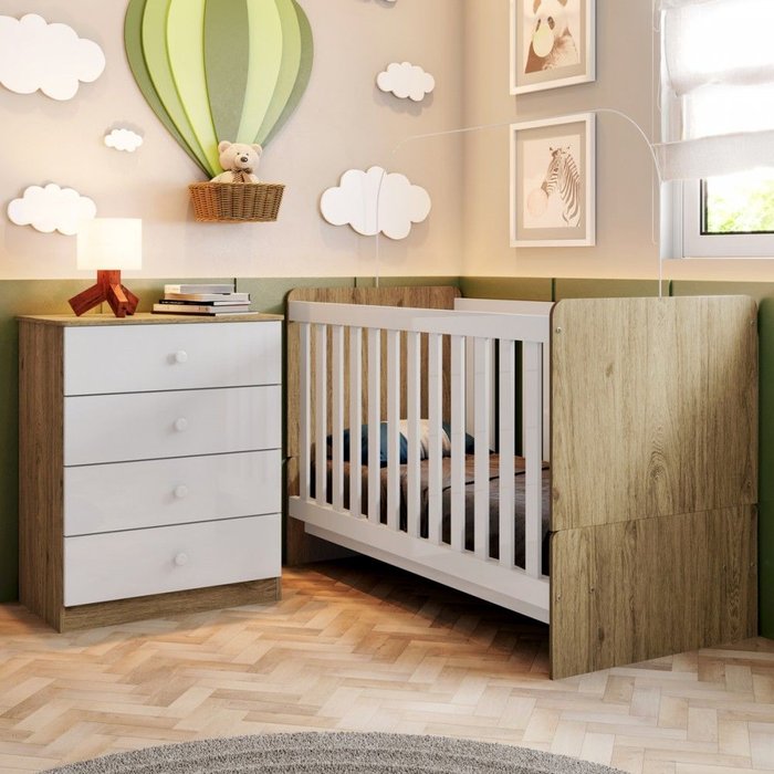 Quarto de Bebê Completo Keisy 4 Gavetas Rústico/branco - Bci Móveis