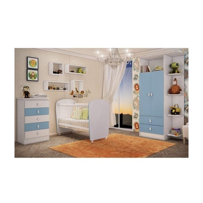 O conjunto Leãozinho foi criado pensando na praticidade e aconchego. O quarto contém um guarda roupa de 2 portas com cantoneira, cômoda com 5 gavetas e berço com rodízios, o qual ajuda na movimentação do mesmo. Todos os produtos são fabricados em MDP 15mm. Gavetas com corrediças telescópicas que permitem um deslizamento silencioso e suave ao usuário.!