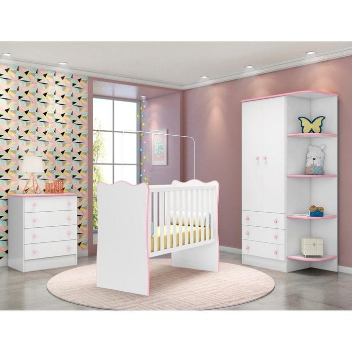 Quarto De Bebê Owens Menininha Branco Rosa Branco