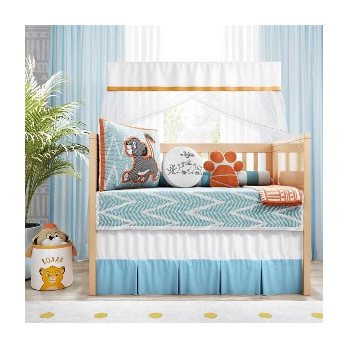 O Quarto de Bebê Tricot O Rei Leão traz o conceito exclusivo da Grão de Gente com estampas e bordados oficiais do acervo Disney que vão conquistar seu coração! O destaque vai para o Kit Berço Tricot O Rei Leão, com estampas étnicas e cores vibrantes. Um enxoval original e colorido, confeccionado com o toque suave dos tecidos 100% algodão e repleto de detalhes irresistíveis.