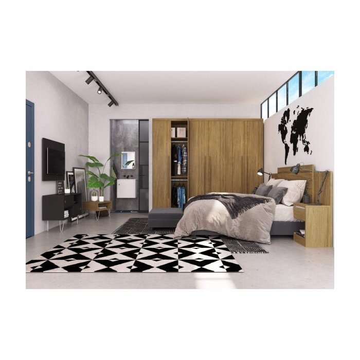 Com a qualidade Siena Móveis que você já conhece, ele possuí uma cabeceira extensível que suporta camas de Casal e Queen, um lindo guarda roupa de 6 portas e 4 gavetas, com amplo espaço interno, perfeito para guardar e organizar suas roupas e pertences, além de um rack com painel e mesinha de apoio.
