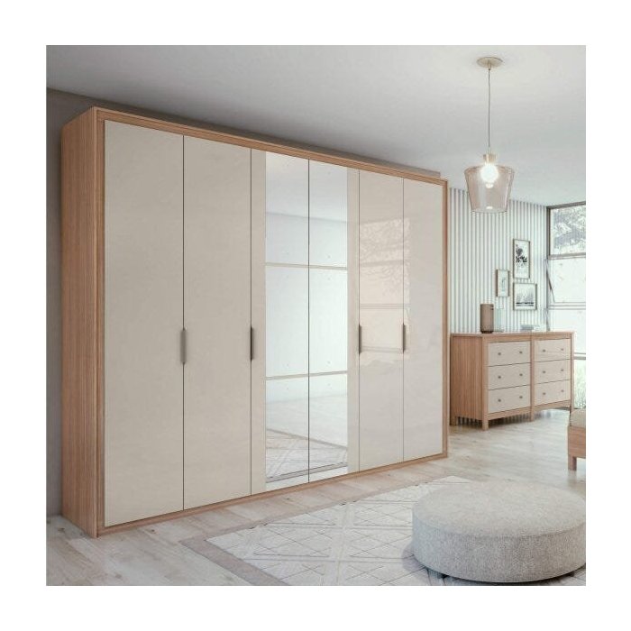 Quarto de Casal com Guarda-Roupa e Cômoda Stylus Móveis Lopas Carvalho Naturale/Off White